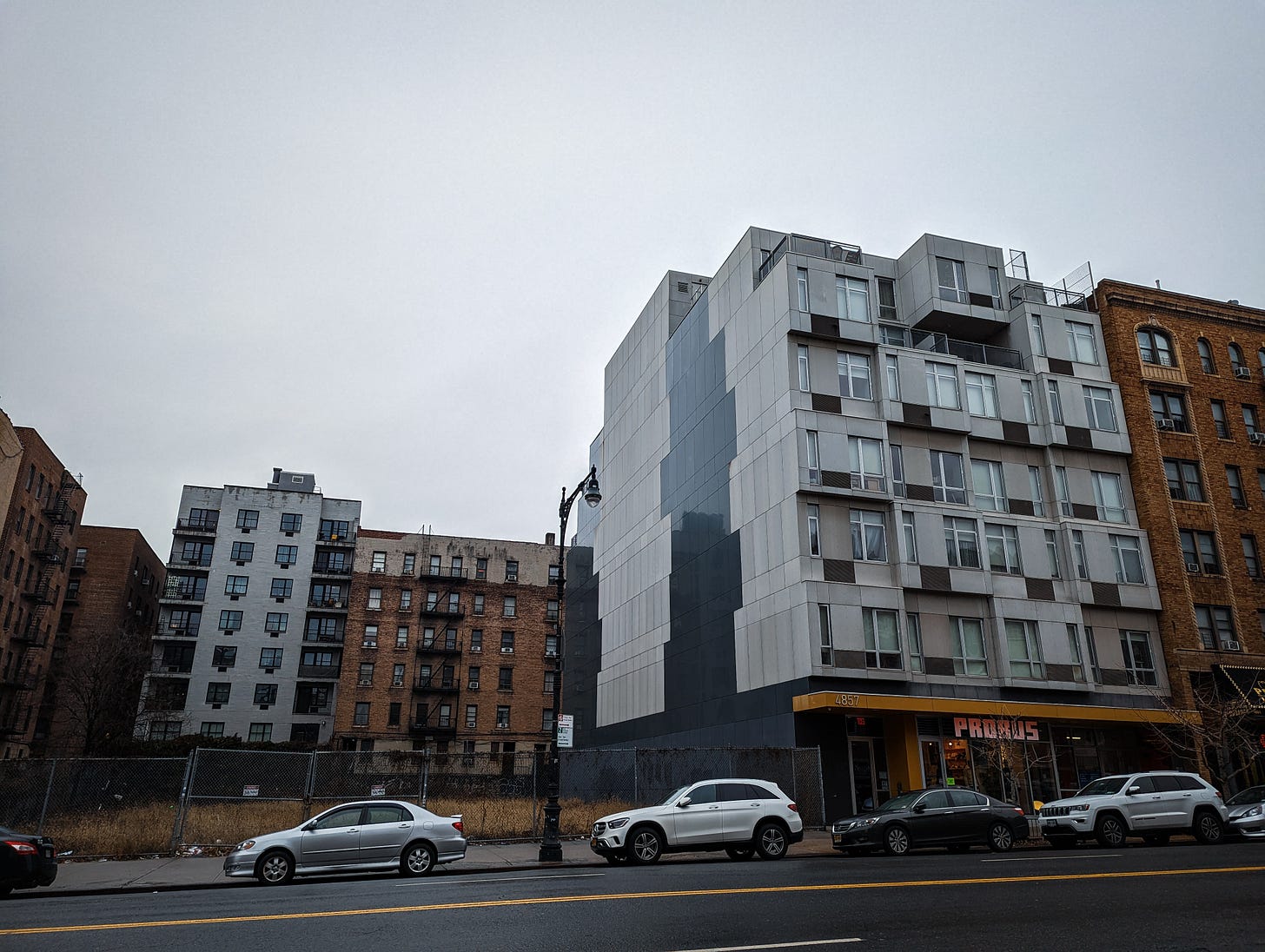 The urban scape for the first 30 blocks was quiet and residential — old medium-rise, high density buildings. I saw a smattering of gentrification architecture.